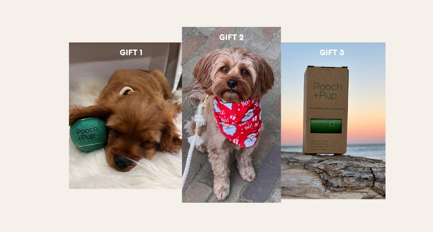 Buy any bundle and spoil your pup with a Christmas bandana, squeaky ball, and 60 x compostable poop bags (valued at $16), plus free shipping if your purchase is over $100 (worth $9.95)!